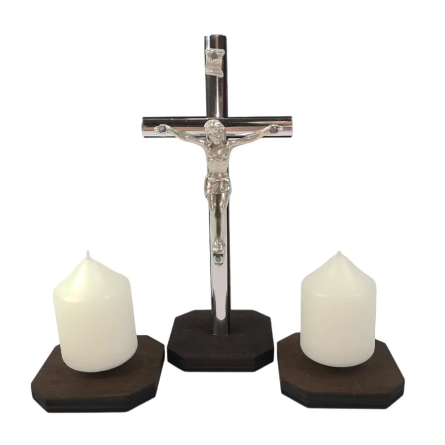 - 2 lichtarzyki o wysokości 1,5 cm – subtelne, ale stabilne podstawki na świece.