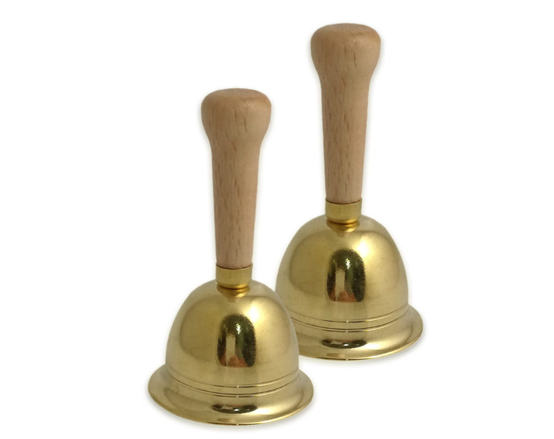Dzwonek z drewnianą rączką.