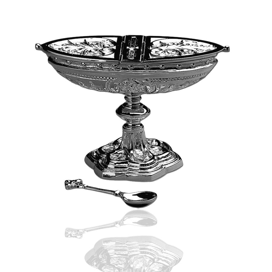 Łodka gotycka, obustronnie otwierana, wykonana z odlewanego mosiądzu, niklowana