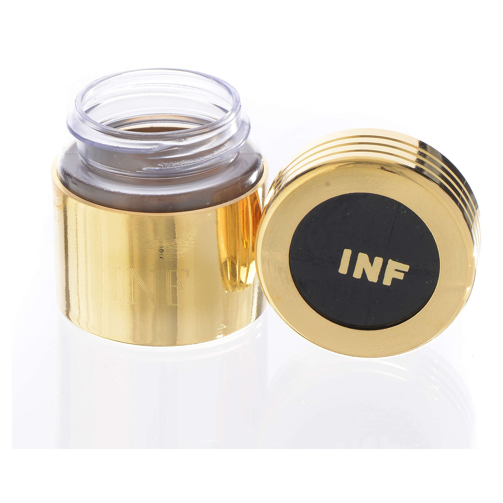 Pojemnik plastikowy z metalową pozłacaną tuleją na zewnątrz.