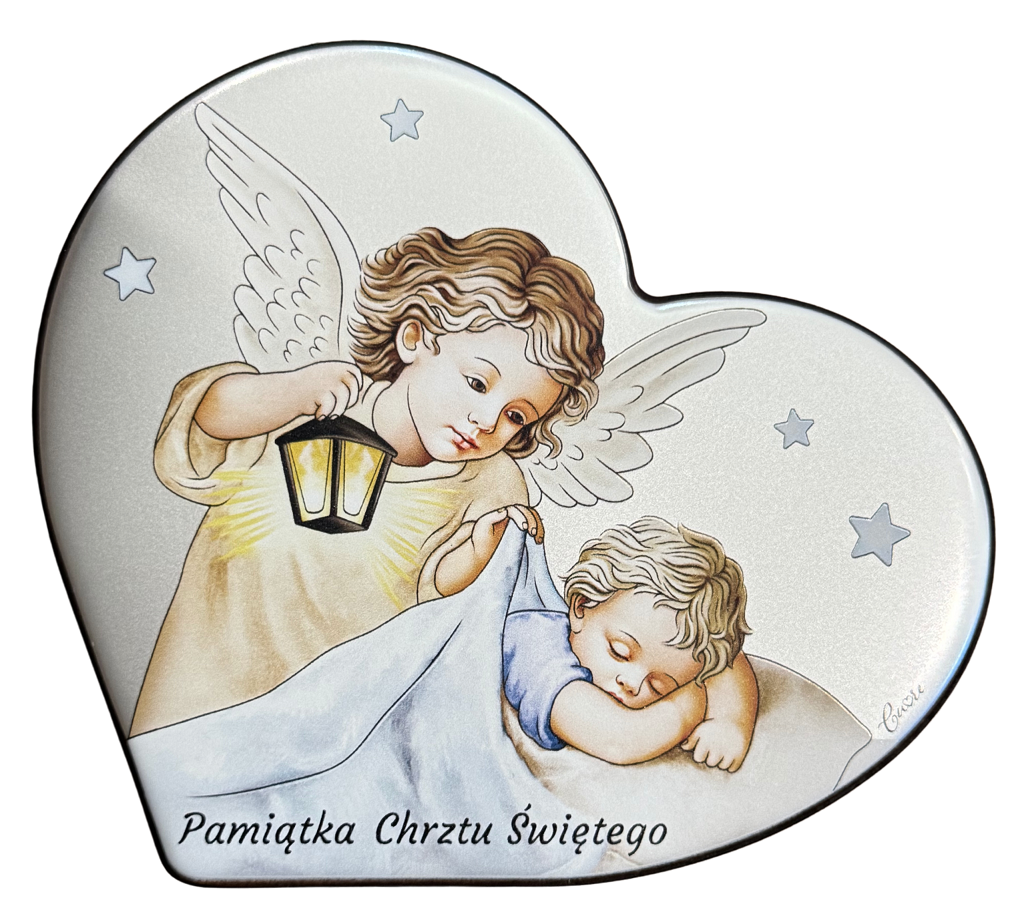 Obrazek na blaszce - Aniołek z lataraneką - Pamiątka Chrztu Świętego CU040/1C