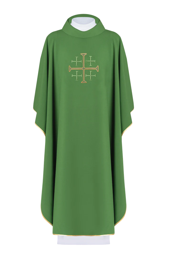 Ornat haftowany z Krzyżem Jerozolimskim - zielony