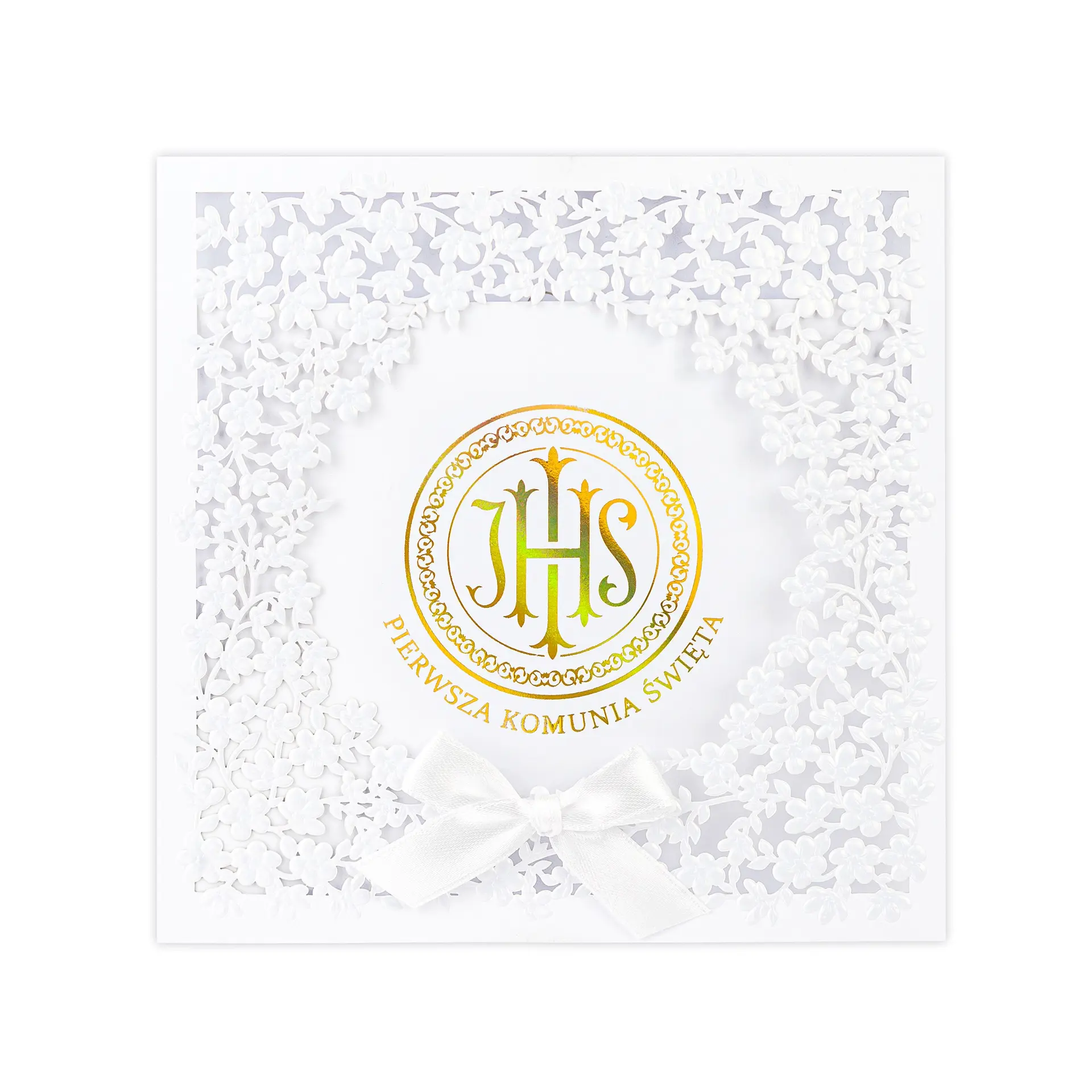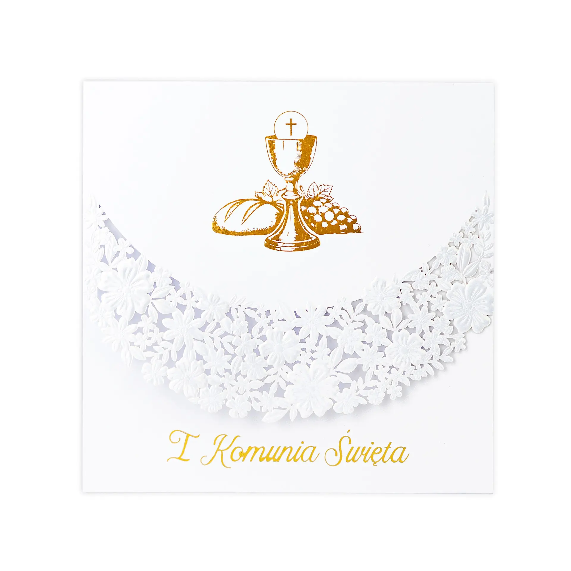 Ta ekskluzywna kartka komunijna to elegancka propozycja na Pierwszą Komunię Świętą,