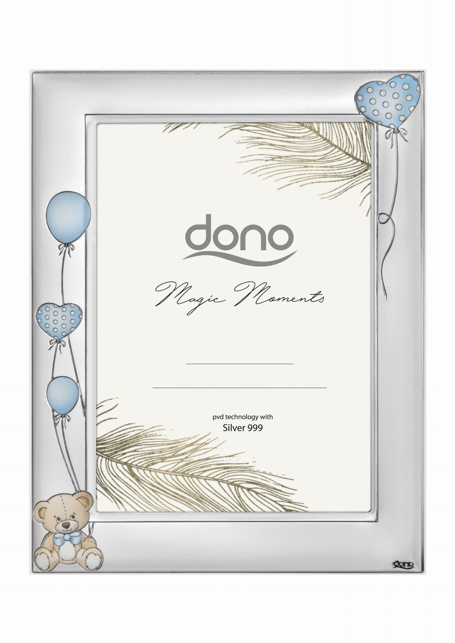 Ramka srebrna - Miś z balonikami, niebieska ds106/10CC
