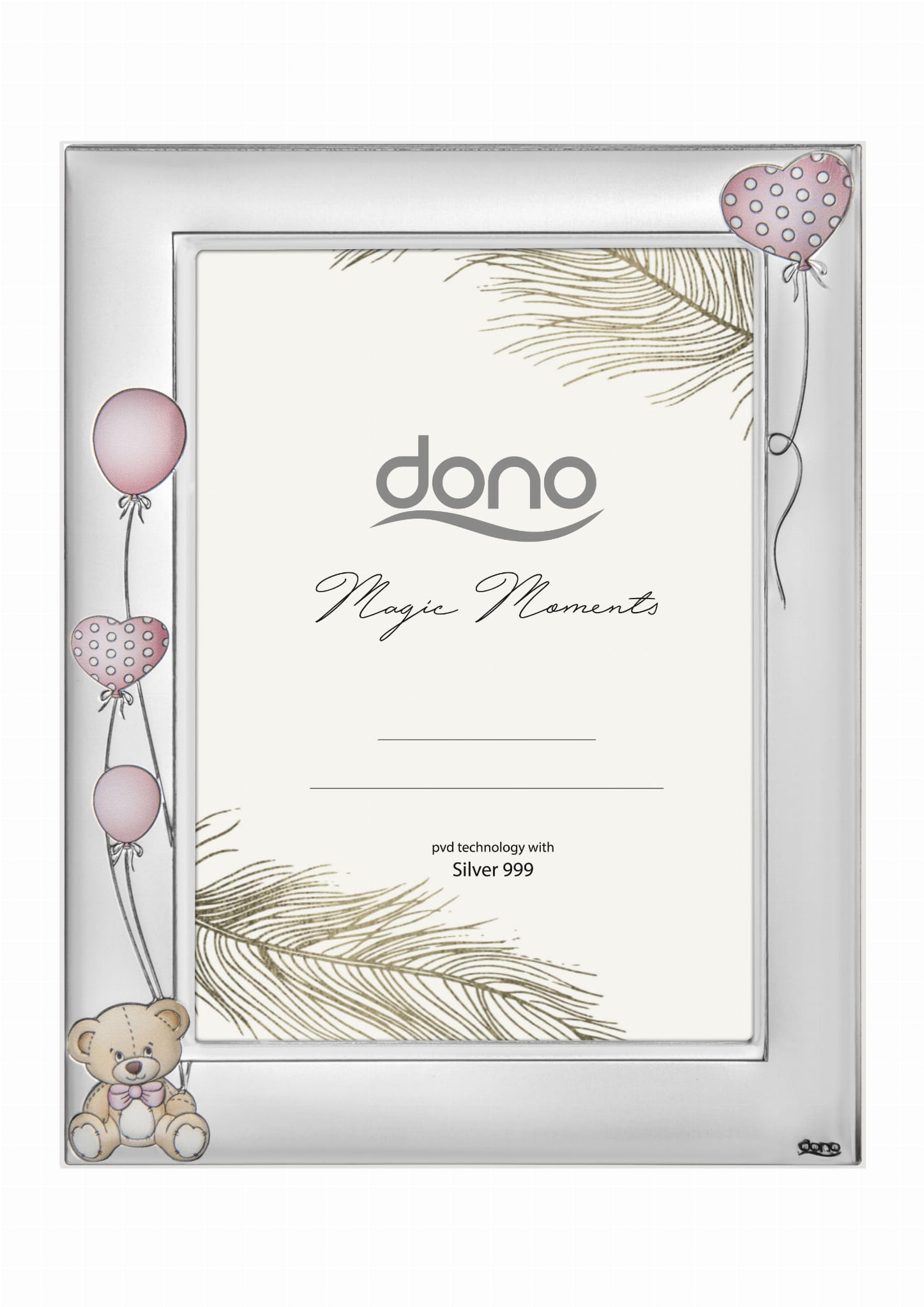 Ramka srebrna - Miś z balonikami, różowa